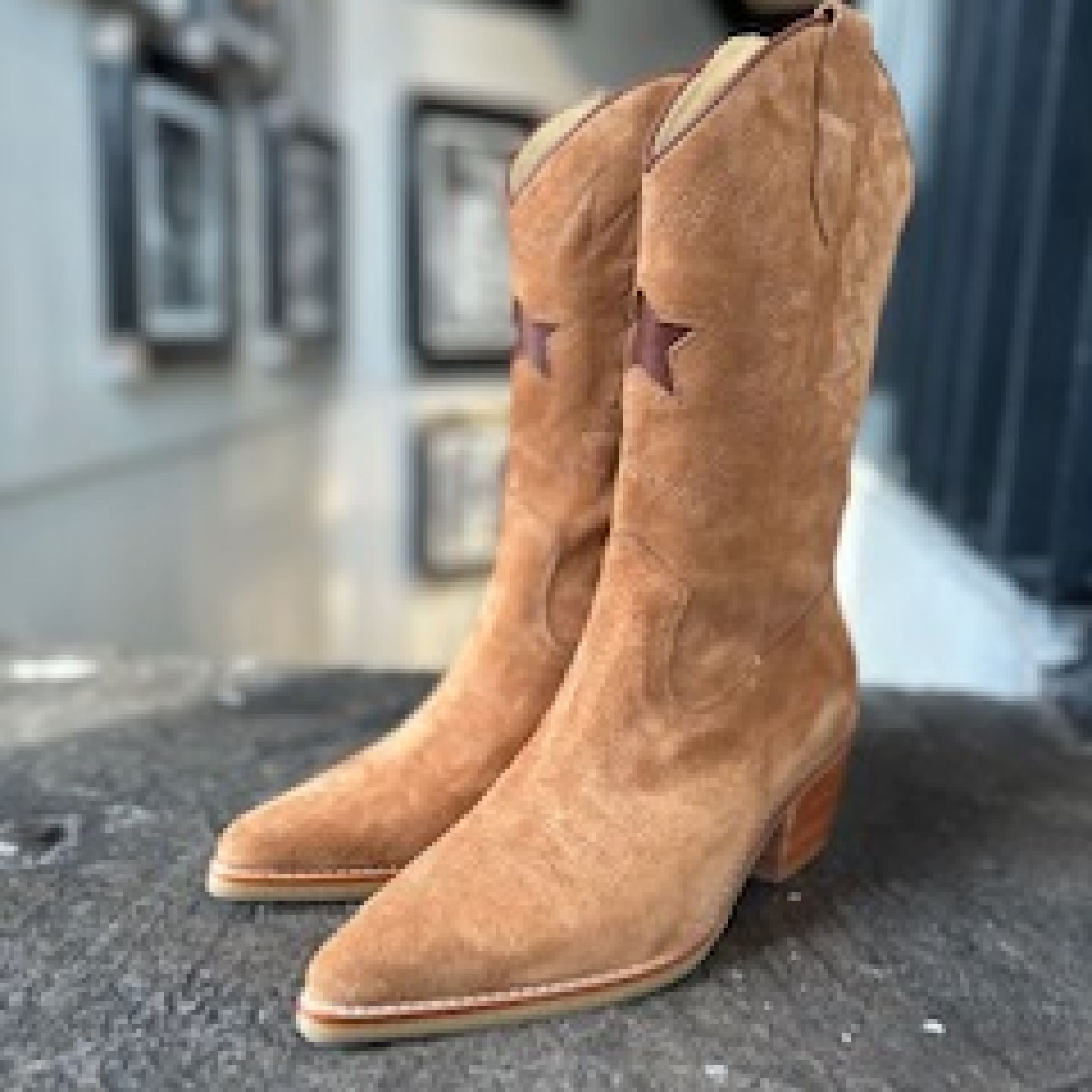 Bota a media pierna (Midi) de reno color camel con costura y detalles al tono taco 5 cm. Todas nuestras botas son 100% cuero, por dentro y por fuera, son diseños unicos y nos llegan una por numero, razon por la que la reposicion en caso de no haber tu numero, no es inmediata , y se debe reservar como preorder para asegurar tu talla.