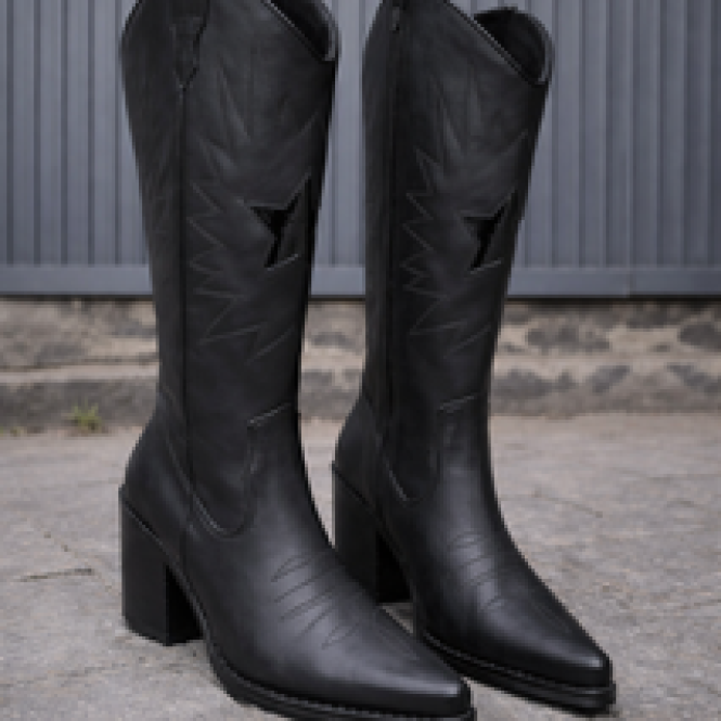 Esta bota de caña alta en tono café es la mezcla perfecta entre elegancia y actitud. Su acabado en cuero suave resalta su calidad, mientras que los bordados estilo western y la estrella aportan ese toque auténtico que eleva cualquier look. De diseño estilizado y punta fina, alarga visualmente la silueta, y su tacón de 7 cm entrega altura con total comodidad. Además, cuenta con cierre lateral para un calce fácil y práctico. Versátil, atemporal y con personalidad…