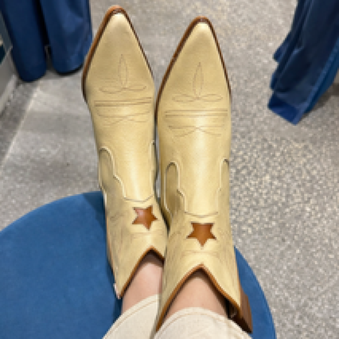 Su diseño de inspiración western, con delicados pespuntes decorativos, aporta un estilo sofisticado y versátil, ideal para elevar cualquier outfit. El taco de 7 cm ofrece la altura perfecta para estilizar la figura sin sacrificar comodidad, permitiéndote acompañarte durante todo el día con seguridad y equilibrio.