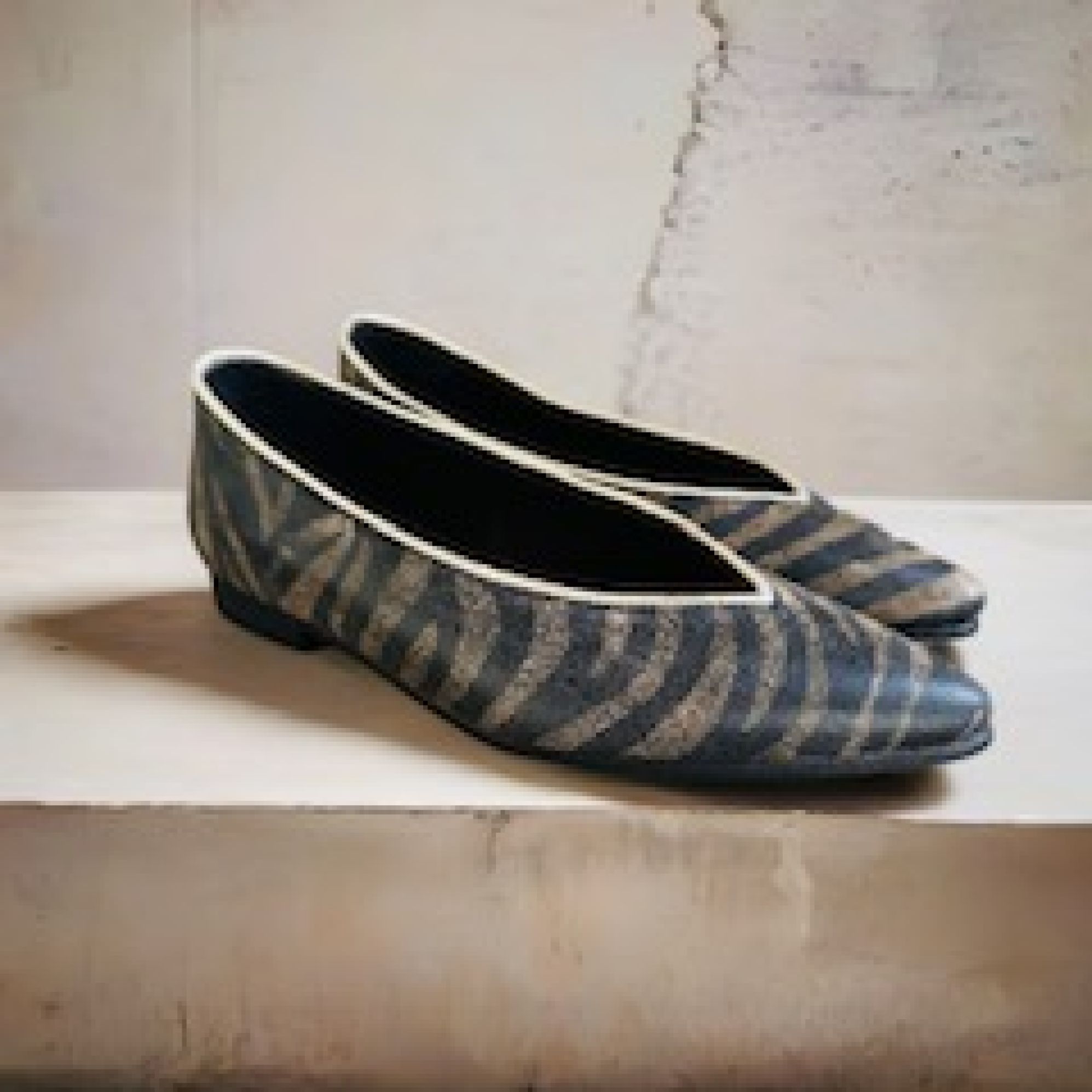 Balerinas cuero cebra cafe con ribetes dorados, coquetas, femeninas y van con todo